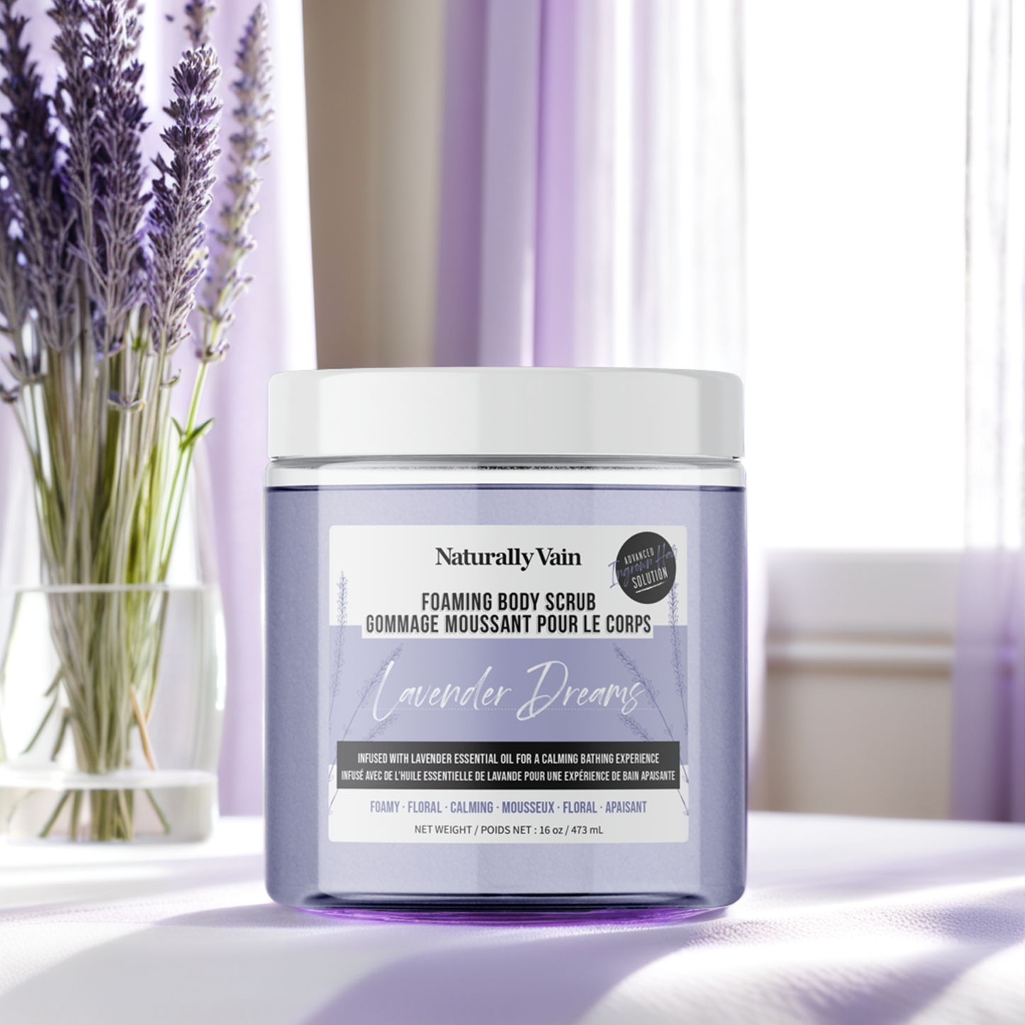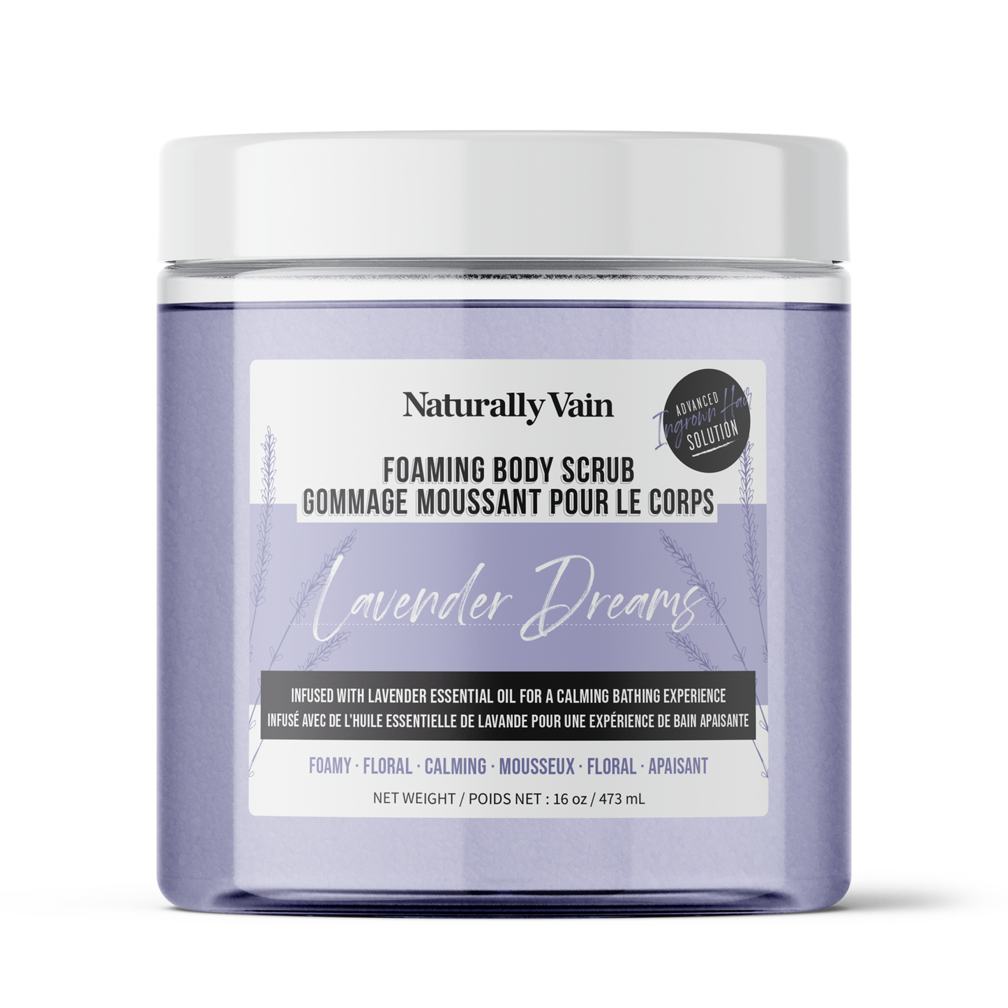 Lavender Dreams: Calming + Hydrating Foaming Body Scrub for Stress-Prone Skin