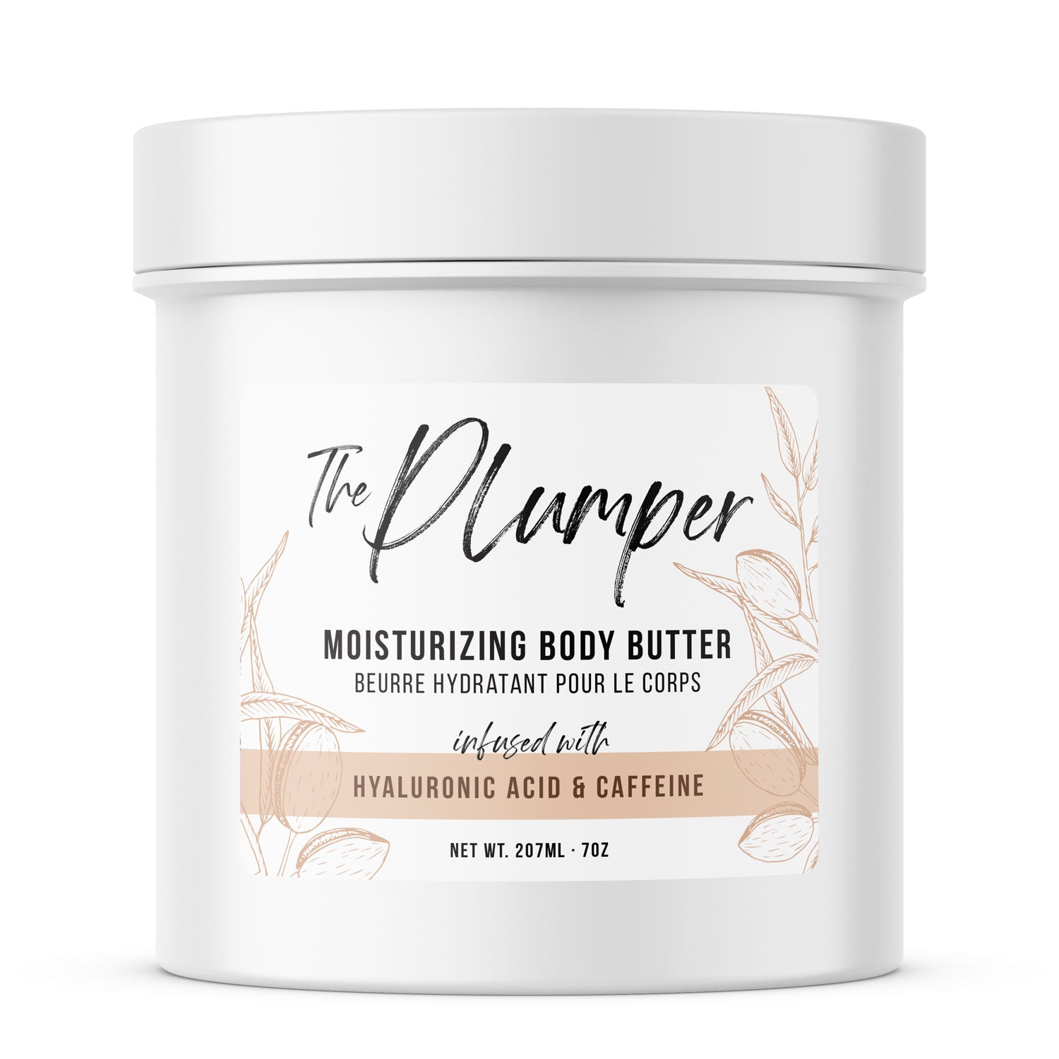 The Plumper Body Butter is your ultimate skin-smoothing solution, designed to tighten, firm, and deeply hydrate for a more youthful, revitalized appearance. Infused with Caffeine Extract, this luxurious body butter helps reduce redness, stimulate circulation, and firm the skin, improving its overall texture and tone. Hyaluronic Acid, renowned for its exceptional moisture-retention properties, deeply hydrates and plumps the skin, leaving it feeling soft, supple, and revitalized.